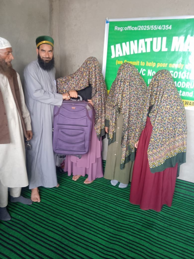 annat-ul-Mawa Marriage Trust is a non-profit organization based in Pulwama, dedicated to supporting the marriages of poor and orphan girls and boys with compassion and dignity. Our mission is to remove financial barriers that prevent deserving individuals from beginning a new chapter in life. Through collective community support and transparent charitable efforts, we arrange and sponsor wedding ceremonies, provide essential assistance, and promote social harmony. At our Head Office in Pulwama, we work tirelessly to ensure that no one is deprived of the joy of marriage due to financial hardship. Jannat-ul-Mawa Trust stands as a beacon of hope — fostering unity, compassion, and equal opportunity for all.